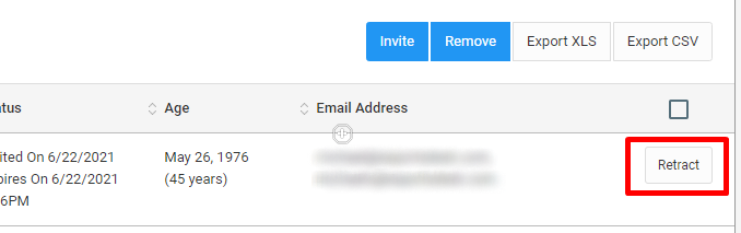 If necessary, you also have the option to retract an invitation by clicking the Retract button for appropriate record in the wailist table