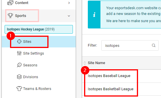 If applicable, go to the Sports -> Sites page and select the site you want to send your email to