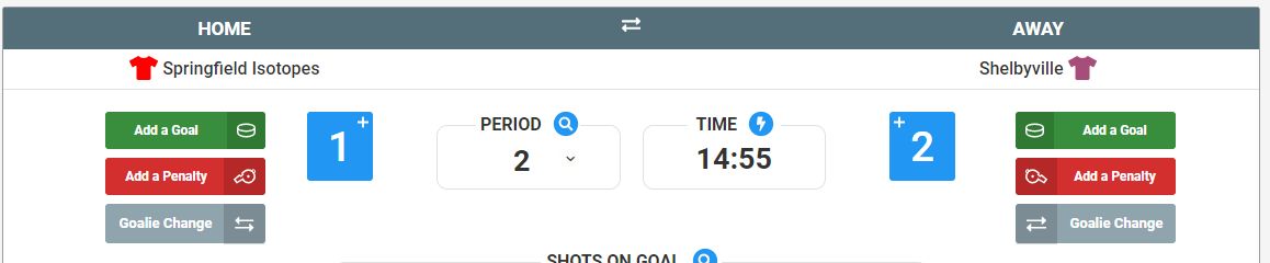 NOTE: The default view on this page for entering the events is Away on the left and Home on the right. If you prefer to view it as Home -> Away, you can click the below marked icon to change it. You can swap the sides as often as needed.